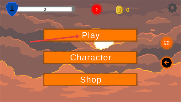 1、進(jìn)入界面后,點(diǎn)擊【Play】按鈕開(kāi)啟游戲,同時(shí)可通過(guò)下方的功能查看角色與商店。