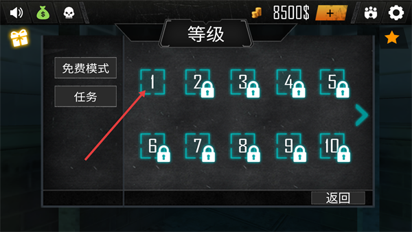 1、進入關卡界面后,選擇第一關開啟游戲,后續關卡需完成前置關卡解鎖。