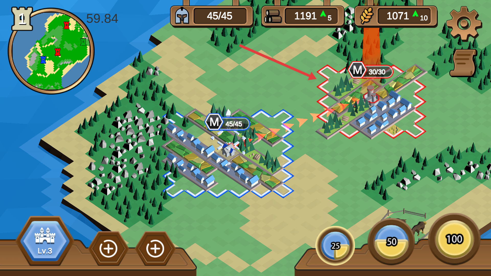 2、調遣訓練好的士兵,攻占敵方城市,搶奪資源以擴張自身勢力范圍。