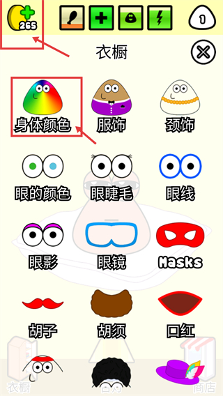 2、進入衣櫥界面后,選擇被框選的【身體顏色】分類,可切換角色的身體配色,需用金幣兌換。