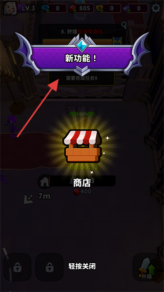 1、完成【委托】任務9解鎖新功能,點擊【商店】消耗400資源,助力快速提升實力。