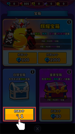 2、使用對應資源打開【輝耀寶箱】【白銀寶箱】等,積累裝備提升吸血女王的戰斗能力。
