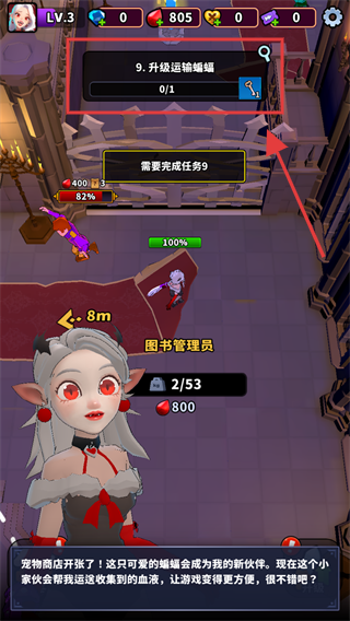 4、推進【任務9】升級吸血蝙蝠進度0/4,完成后增強血液收集效率,助力吸血女王通關。