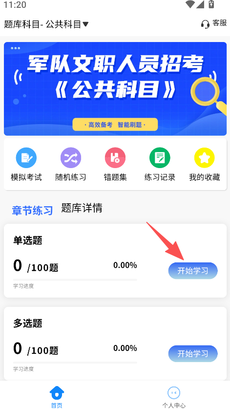 1、進入首頁,選擇章節練習的開始學習。