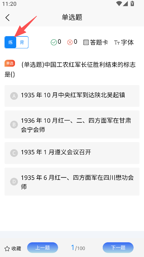 2、在單選題頁面完成題目作答。