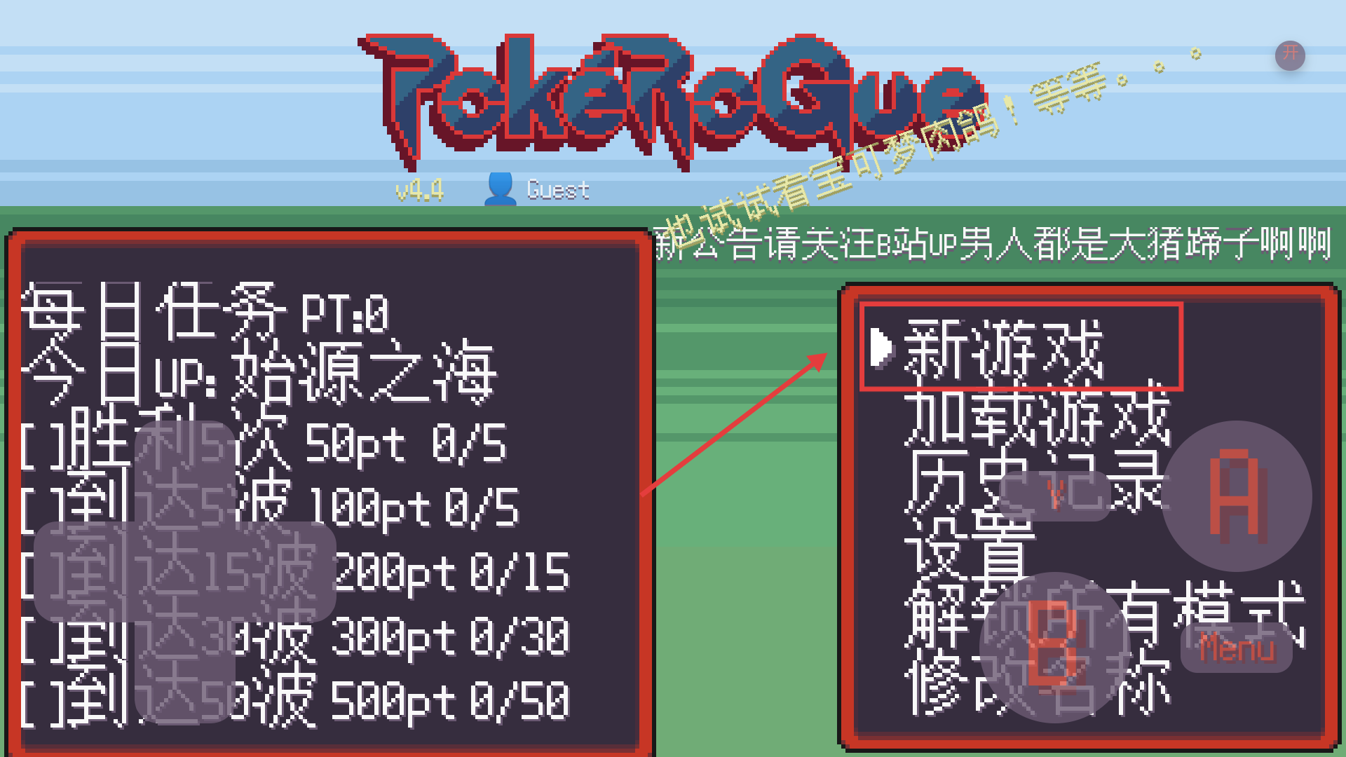 1、主界面選【新游戲】開始冒險(xiǎn),留意每日任務(wù)進(jìn)度,初始階段優(yōu)先推進(jìn)主線解鎖更多功能。