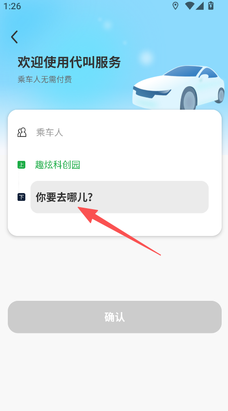 2、支持目的地輸入功能,在代叫服務頁面填寫目的地信息,完成叫車的基礎設置。