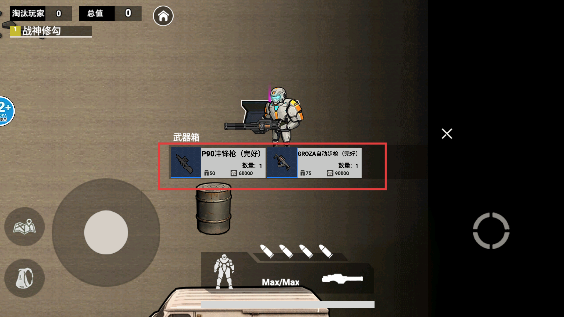 2、打開【武器箱】優先選擇【GROZA自動步槍】,其威力大適合初期戰斗,搭配【P90沖鋒槍】應對近距離敵人。
