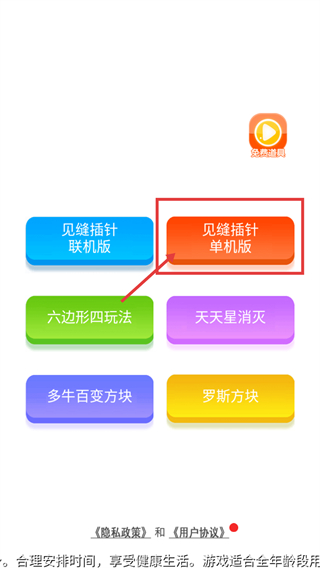 1、選擇被框選的【見縫插針單機版】選項,進入該游戲模式,開啟見縫插針類的關卡挑戰。
