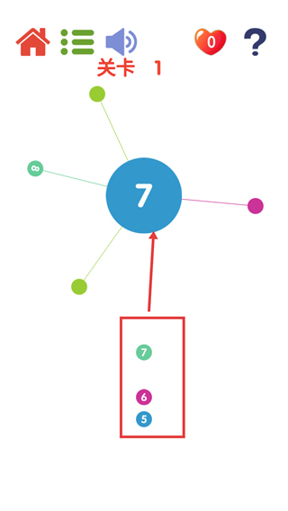 3、關卡1中,將被框選的數字針(7、6、5)依次插入中心圓盤的空隙處,避免與已有針碰撞以推進關卡。