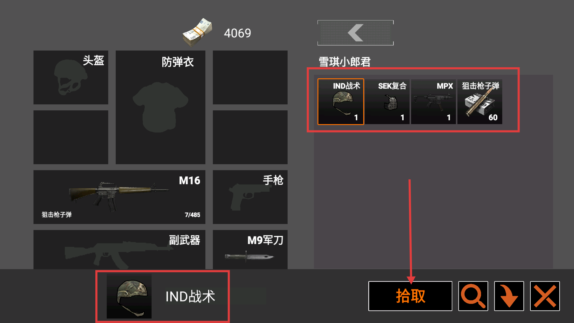 4、在倉庫界面拾取【IND戰術】頭盔與【MPX】武器,裝備后強化戰斗能力,更易完成撤離任務。