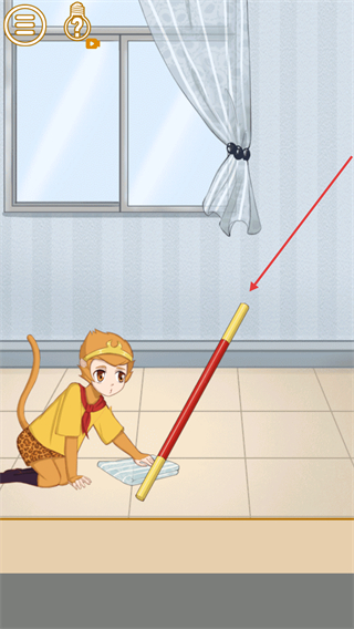 4、在窗簾附近找到【金箍棒】,完成當(dāng)前關(guān)卡的目標(biāo),幫助悟空尋回丟失的武器。