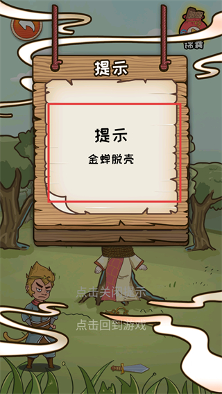 3、遇到解謎難點時,查看【提示】獲取【金蟬脫殼】的線索,助力解開救援謎題,之后點擊關閉提示回到游戲。