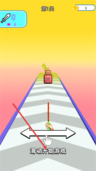 1、在第1關的初始界面,按照“滑動開始游戲”的提示進行滑動操作,啟動本關的游戲進程。