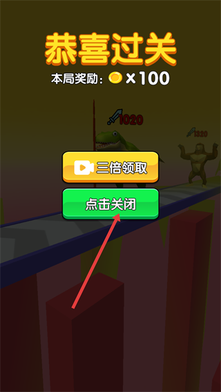 4、通關后,在“恭喜過關”彈窗中,點擊“點擊關閉”按鈕,結束本關流程。
