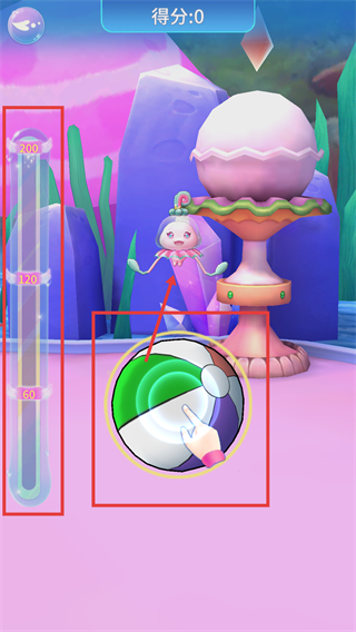 2、點擊界面中的【排球】道具,與寵物開展游玩互動,積累得分,左側進度條對應【200】【120】【60】等不同得分檔位。