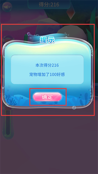 3、互動后彈出提示,獲得寵物的好感值,點擊【確定】按鈕關閉提示。