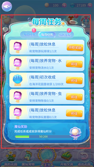 4、進入【每周任務】界面,完成任務后,點擊【領取獎勵】獲取對應的資源獎勵。