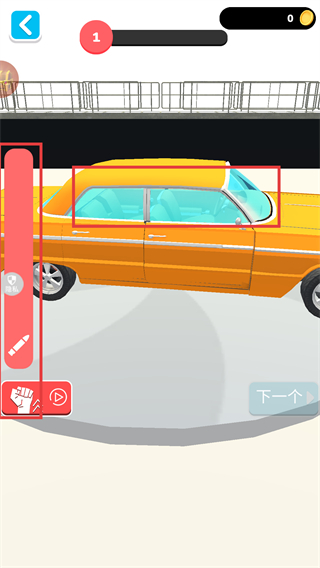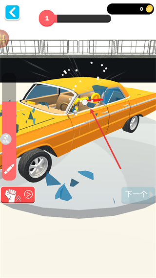 3、點擊左側【拳頭】按鈕破壞汽車車窗區域,快速積累金幣,解鎖更強力的破壞道具和車輛。