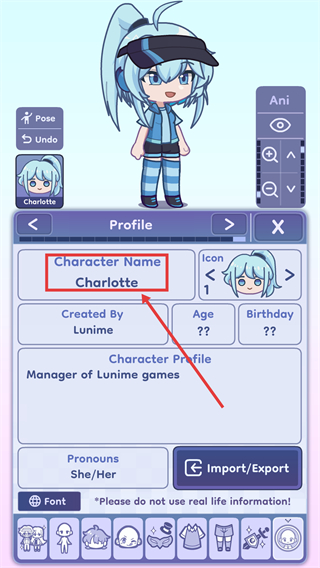 2、進入【Profile】界面,可查看并編輯【CharacterName】-【CreatedBy】等信息,完善角色基礎資料。