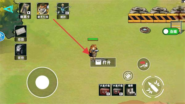 2、移動角色靠近場景中的道具箱,點擊“打開”獲取資源。