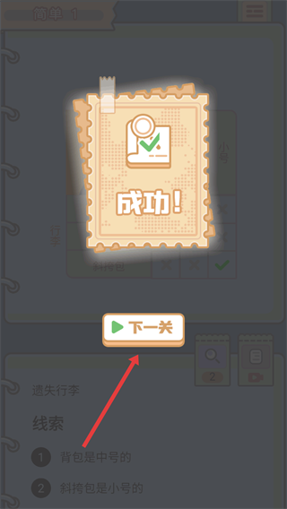 4、完成表格標記后會顯示【成功】,點擊下方【下一關】按鈕,即可進入下一個推理關卡。