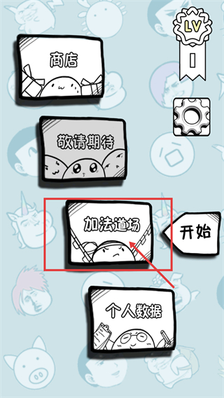 1、在主界面點擊被框選的【加法道場】,再點擊“開始”按鈕,進入加法運算關卡,開啟數字解謎挑戰。