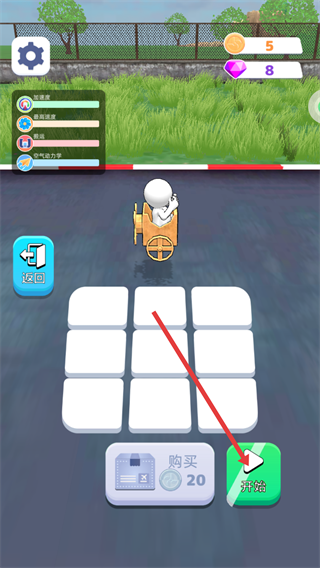 1、在游戲初始界面,查看【加速度】等屬性面板后,點擊綠色的【開始】按鈕,即可進入游戲游玩。