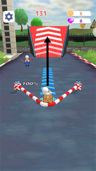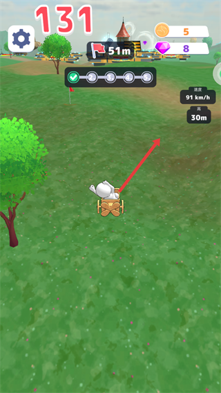 2、進入游戲后,借助彈射裝置將角色彈射,此時可查看界面顯示的【最好的-131】及進度信息。