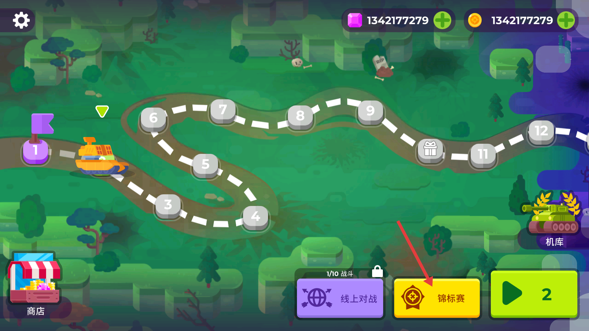 2、在關(guān)卡地圖界面,點擊【錦標(biāo)賽】按鈕進入高難度對戰(zhàn)模式,可獲取更豐厚的戰(zhàn)斗獎勵。