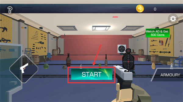 1、點擊【START】進入游戲,先在【ARMOURY】解鎖武器,再選擇模式開始訓練射擊技巧。