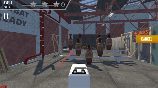 3、在射擊場景瞄準花瓶目標,精準射擊完成任務,提升反應速度和射擊精度。