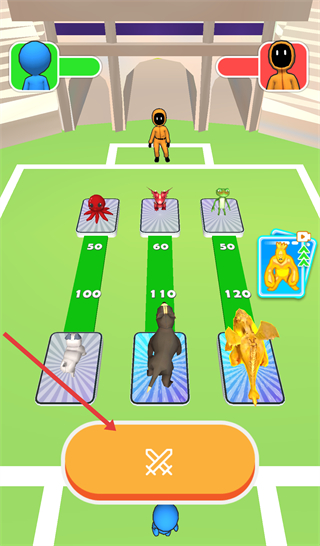 4、配置好卡片陣容后,點擊橙色對決按鈕,開啟與敵方的怪物卡片對戰(zhàn)環(huán)節(jié)。