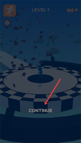 4、到達終點后,點擊【CONTINUE】按鈕,進入下一個關卡繼續(xù)游戲流程。