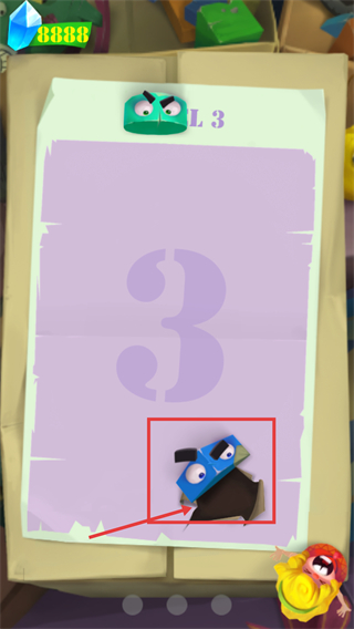 2、進入【LEVEL-3】關卡后,需關注紅色框標注的綠色角色,要小心躲避它。