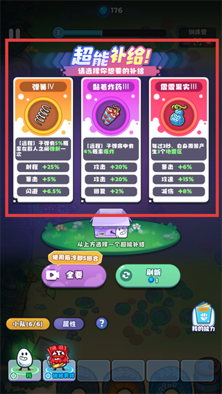 4、進(jìn)入【超能補(bǔ)給】界面,選擇【彈幕Ⅳ】【秘書好療愈Ⅲ】等補(bǔ)給,點(diǎn)擊對(duì)應(yīng)選項(xiàng)強(qiáng)化戰(zhàn)斗能力。