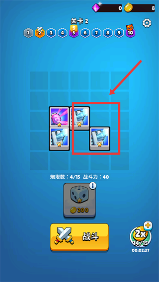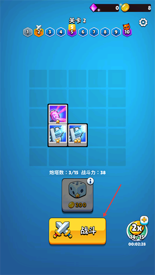 3、領(lǐng)取新炮塔后,再次點擊底部的【戰(zhàn)斗】按鈕,開啟新的挑戰(zhàn)。
