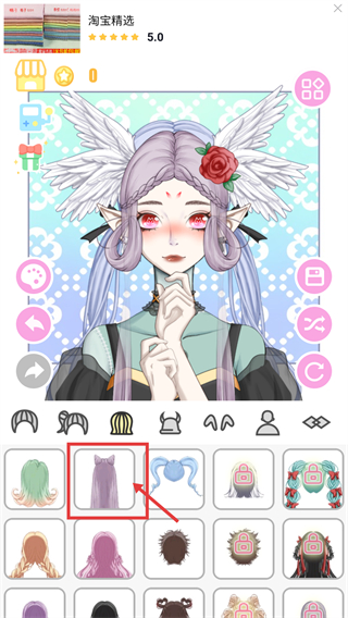 2、點擊標注的長發發型選項,替換當前的發型裝扮,繼續利用裝扮欄的選項,完善角色的外觀自定義內容。