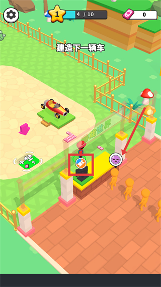 2、根據(jù)提示完成【建造一輛車】任務(wù),解決游客【沒有座位】的反饋,提升游玩體驗(yàn)與滿意度,推動(dòng)游樂園口碑初步建立。