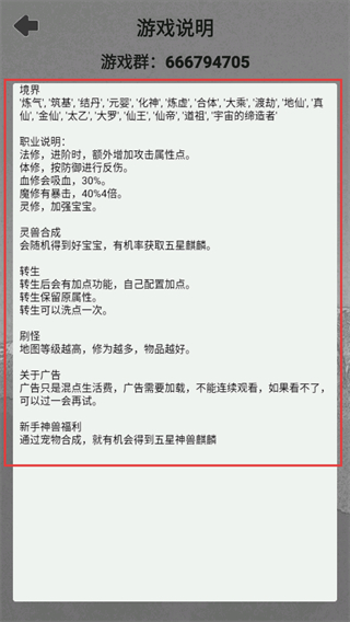 2、查看游戲說明了解各職業特性,如法修加攻擊、體修反傷,選擇契合的修煉方向開啟歷練。