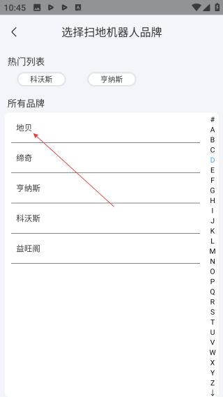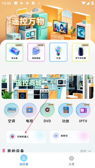 1、在遙控首頁,點擊【掃地機器人】選項,進入品牌選擇的操作界面。
