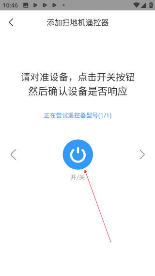 4、進入添加遙控器頁,點擊【開/關】按鈕,即可控制對應設備。