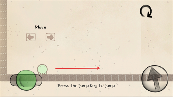 2、通過【Move】對應的左右箭頭按鈕控制角色位移,遵循【Press-the-jump-key-to-jump】的提示,按下跳躍鍵完成角色的跳躍動作。