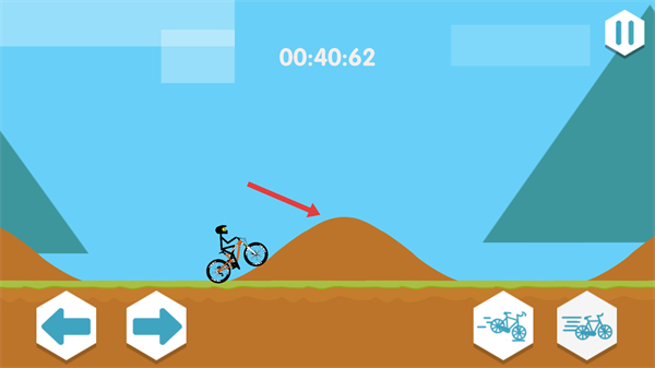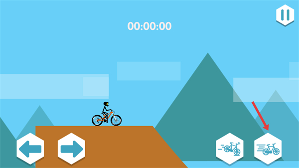 3、進(jìn)入游戲界面后,通過(guò)左側(cè)【左右箭頭】按鈕調(diào)整行駛方向,右側(cè)按鈕可控制單車的行駛速度,助力冒險(xiǎn)。
