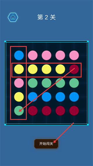 2、進入【第2關】界面,觀察界面內的色彩區塊分布,確認后點擊【開始闖關】按鈕,正式進入該關卡的挑戰。