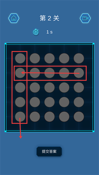 3、在【第2關】闖關過程中,留意上方的【1s】計時進度,完成操作后點擊【提交答案】按鈕來提交解題結果。