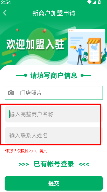 3、在下方填寫完整的加盟信息,核對無誤后提交即可完成申請。