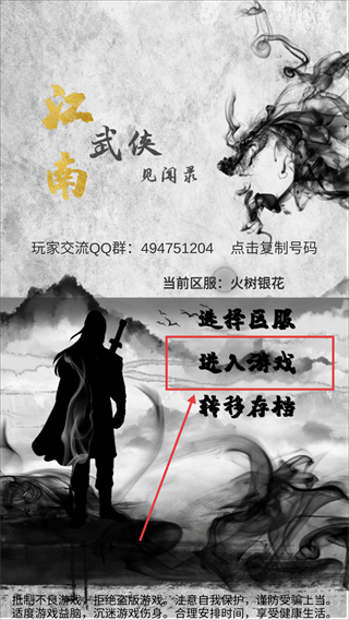 1、選擇【火樹銀花】區服后點擊【進入游戲】,開啟江南武俠之旅,新手跟隨指引快速適應半掛機玩法。