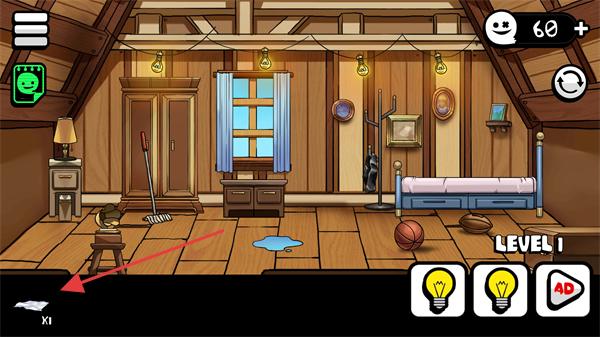 1、進入【LEVEL1】場景后,先獲取界面左下角的【紙-X1】道具,這是推進關(guān)卡的基礎物品之一。