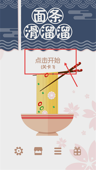 1、進入【面條滑溜溜】界面,點擊紅框標注的【點擊開始(關卡1)】按鈕,即可進入該游戲的關卡1游玩環節。